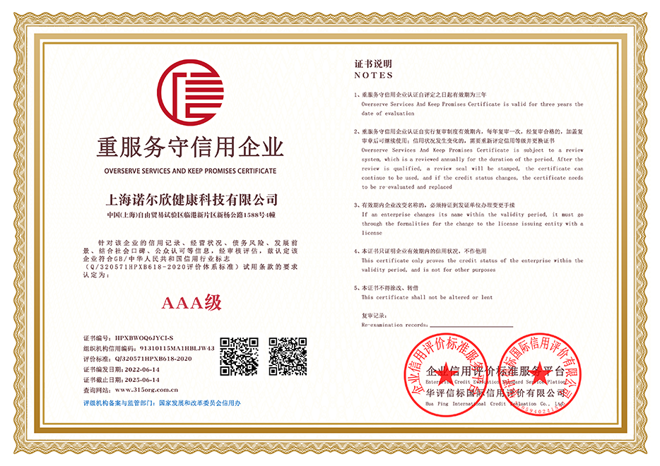 我們秉承著品牌信譽(yù)為先的宗旨,時(shí)刻銘記質(zhì)量是諾爾欣生存的基石 我們尊重標(biāo)準(zhǔn)化流程,發(fā)揮每一位員工的潛能,不斷優(yōu)化企業(yè)的每一個(gè)環(huán)節(jié) 用優(yōu)良的設(shè)備與服務(wù),讓每個(gè)人都能夠擁有健康,享受美好生活