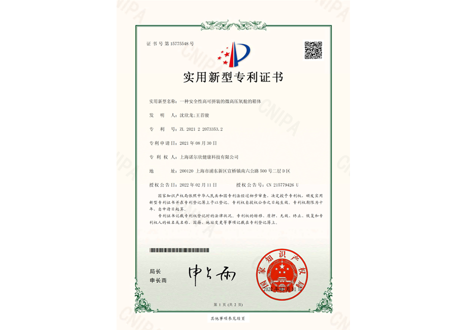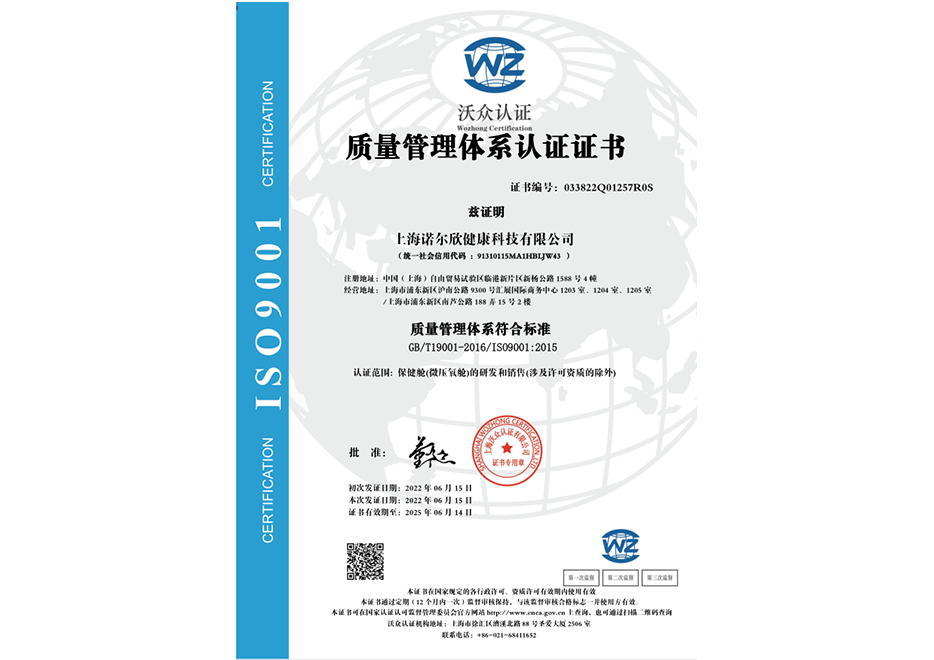 上海諾爾欣健康科技有限公司,是一家專注于微壓氧艙等健康產(chǎn)品的民營企業(yè)。秉承著品牌信譽(yù)第一的宗旨,時(shí)刻銘記質(zhì)量是諾爾欣生存的基石。我們尊重標(biāo)準(zhǔn)化流程,發(fā)揮每一位員工的潛能,不斷優(yōu)化企業(yè)的每一個(gè)環(huán)節(jié)。用優(yōu)良的設(shè)備與服務(wù),讓每個(gè)人都能夠擁有健康,享受美好生活。