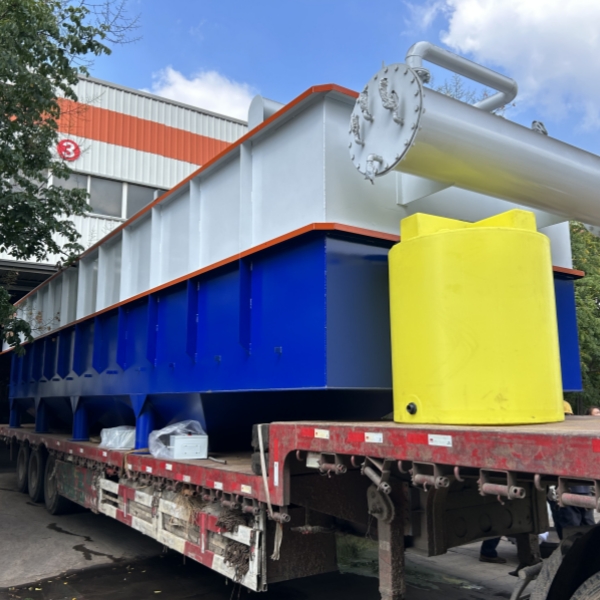 氣浮處理:利用氣浮技術(shù)去除污水中的油脂和細(xì)小懸浮物。氣浮池通過溶氣系統(tǒng)產(chǎn)生微細(xì)氣泡,這些氣泡與污水中的懸浮物和油脂結(jié)合,形成浮渣并上浮至水面,然后通過刮渣板去除。