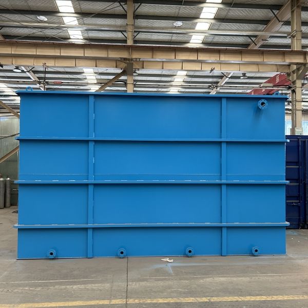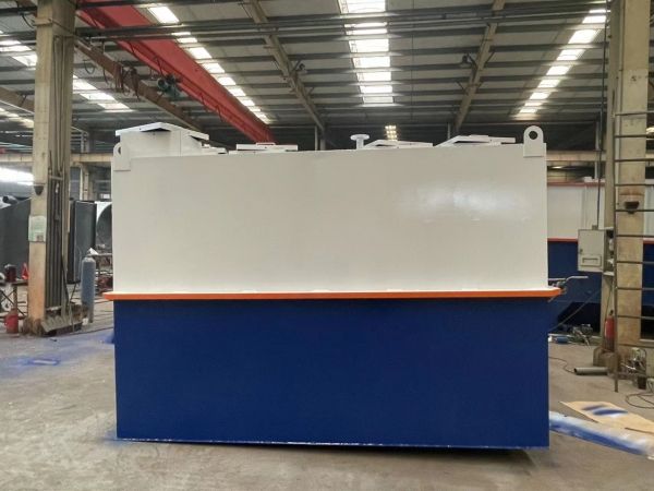 這個即將發貨的生活污水處理設備,處理的是廠區生活污水,因為這是一個小廠區,所以說設備比較小,每小時的處理量是8噸,因為這個廠區還有一部分的工業廢水,所以說上了我們這個設備,通過我們這個設備處理完以后,