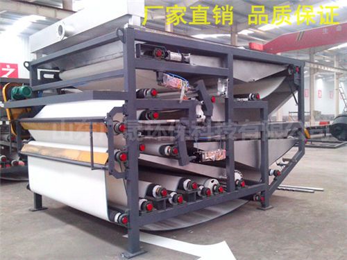 污泥脫水機是以進口品牌壓濾機機型為基礎,改進、設計制造的污泥脫水機。該機在許多部件、設計不足之處進行了革新,增加了濃縮脫水區,使該系列設備的脫水指標和運轉性能達到佳狀態,同時更加整齊、美觀。對進料介質濃度波動具有較強的適應能力, 處理能力大、連續運行處理效果好、擠出泥餅的固含量高。