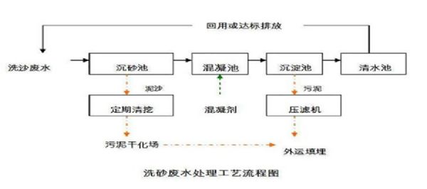 洗砂廢水處理方案,針對洗沙污水有著多年的治理經驗和以往工程案例,在處理工藝上采用“沉淀+濃縮分離+污泥干化”處理該廢水,工藝先進,處理效果好,處理后的排放水可達到循環利用標準。