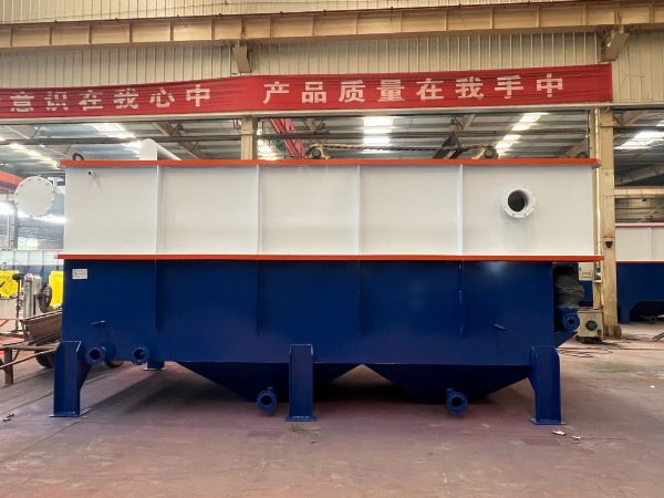 豆制品辣豆干加工廢水處理裝置預處理階段格柵與調節池:攔截大顆粒雜質,均化水質水量,削減高峰沖擊負荷。氣浮沉淀一體機:原理:通過加藥(PAC/PAM)使懸浮物絮凝,微氣泡粘附絮體上浮,實現固液分離。優勢