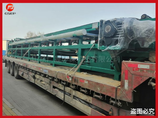制砂泥漿脫水設(shè)備是通過兩條濾帶纏繞在一系列順序排列、大小不等的輥輪上,利用濾帶間的擠壓和剪切作用,來脫除料漿中水分的一種壓濾設(shè)備,具有著能連續(xù)作業(yè)、自動化程度高、節(jié)能、使用維護方便等優(yōu)點,是一種進行污泥脫水減量化處理的理想設(shè)備。