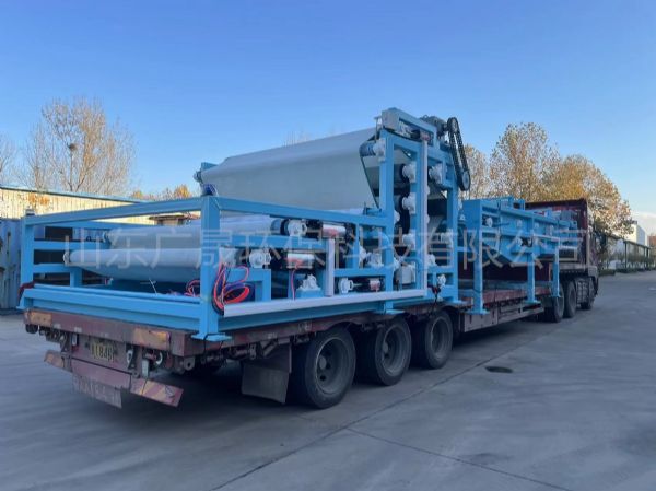 在重力的作用下自由水透過濾網背面而滲出分離,形成不流動狀態的泥漿,達到壓榨脫水區實施較大壓力條件,然后隨著網帶的移動而夾持在上下兩條網帶之間,經過具有可調張緊力的過濾帶及直徑逐漸遞減的轉輥和對壓輥,實施連續增加的緩慢的對輥擠壓力、剪切力作用。