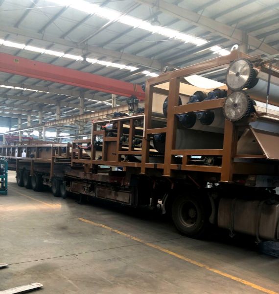4.對夾擠壓輥(或帶)高壓脫水區,污泥脫離中壓區后就進入高壓區,污泥在此區內受到1~3組對夾輥(或帶)擠壓,經過擠壓后體積大幅收縮,污泥內的間隙游離水被充分擠出,此時,形成含固率較高的濾餅,分體式濃縮帶式污泥脫水機特別適用大型礦山尾泥、大型洗砂場,石場制砂泥漿脫水、陶瓷原料泥漿、洗山砂、土包沙泥漿脫水、河道清淤等工業污泥深度脫水處理和大型污水廠的使用。