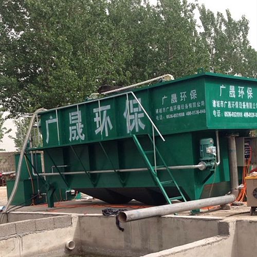 (2)氣浮機(jī):經(jīng)加藥反應(yīng)后的污水進(jìn)入氣浮的混合區(qū),與釋放后的溶氣水混合接觸,使絮凝體粘附在細(xì)微氣泡上,然后進(jìn)入氣浮區(qū)。絮凝體在氣浮力的作用下浮向水面形成浮渣,下 層的清水經(jīng)集水器流至清水池后,一部分回流作溶氣使用,剩余清水通過溢流口流出。氣浮池水面上的浮渣積聚到一定厚度以后,由刮沫機(jī)刮入氣浮機(jī)污泥池后排出,氣浮底部的淤泥定時間用抽糞車吸出外運(yùn),或者是打開排污閥自流入污泥收集池,用污泥脫水機(jī)脫水處理,從而減少二次污染,安全可靠。